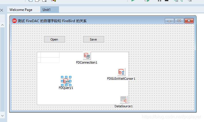 上图中,FDQuery1 连接了我的测试数据库,语句是:select * from TESTDATA.fdb