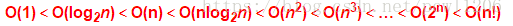 )以及阶乘阶(n!)。它们的时间复杂度由小到大依次为: