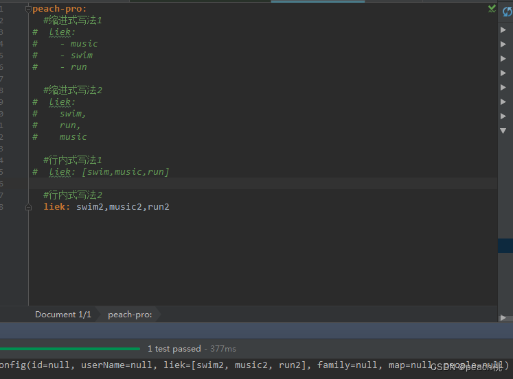 当YAML配置文件中配置的属性值为数组或单列集合类型时,主要有两种书写方式︰缩进式写法和行内式写法。缩进式有两种写法,行内式写法如下: