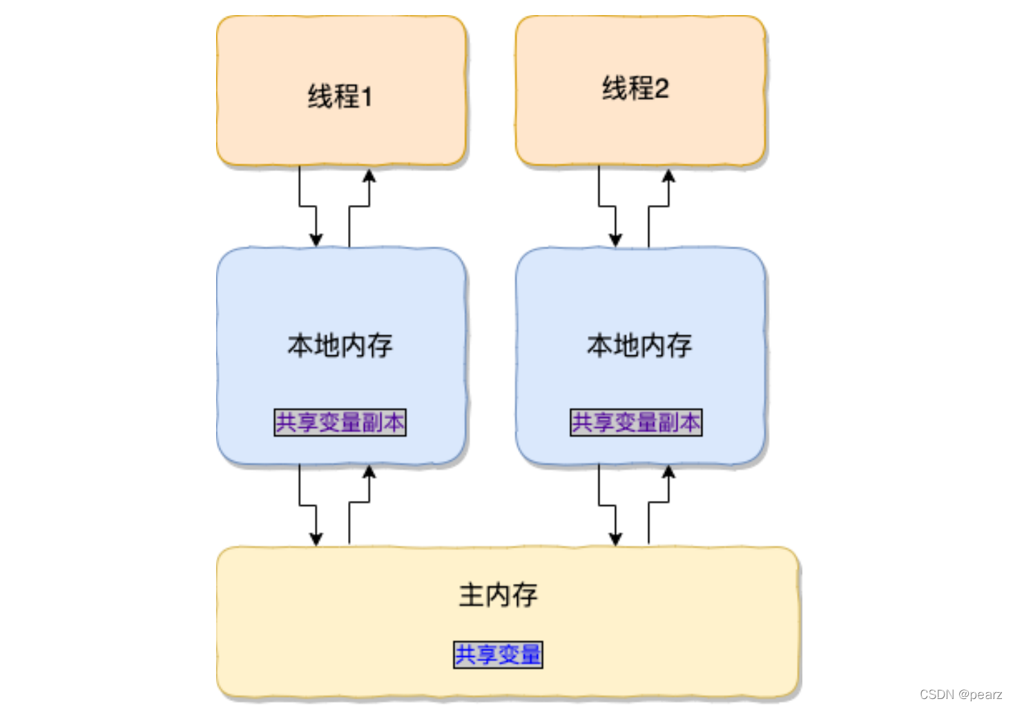 在JDK1.2之前,Java的内存模型实现总是从主存(即共享内存)读取变量,是不需要进⾏特别的注意的。⽽在当前的Java内存模型下,线程可以把变量保存本地内存(⽐如机器的寄存器)中,⽽不是直接在主存中进⾏读写。这就可能造成⼀个线程在主存中修改了⼀个变量的值,⽽另外⼀个线程还继续使⽤它在寄存器中的变量值的拷⻉,造成数据的不⼀致。