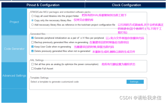 把引脚复用为说需要的功能(这个基本上靠看手册),然后设置你想要的复用功能就可以生成工程文件了。