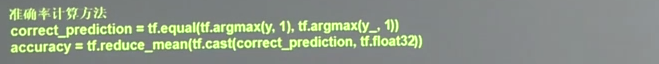 在手写数字的识别中,我们用这个方法评估模型的准确性。y是神经网络喂入的BATCH_SIZE的数据后的结果,是BATCH_SIZE*10的二维数组,每一行表示一轮BATCH前向传播的结果。tf.argmax(y,1)的第二个参数1,表示选取最大值的操作仅在第1个维度进行,也就是,返回每一行最大值所对应的列表索引号。tf.argmax(y,1)会得到一个长度为BATCH的一维数组,这个一维数组中的值就表示了每一轮样本推算出的数字识别结果。tf.equal()判断两个张量中每一维是否相等,如果相等返回True,否则返回False。 tf.cast(corect_prediction,tf.float32)将boolean型转换成实数型。然后计算平均值。这个平均值就是模型在这一组数据上的准确率。