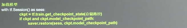 加载模型的时候,在with结构中加载ckpt,如果ckpt和模型存在,则用saver.restore()把模型参数加载到当前会话中。