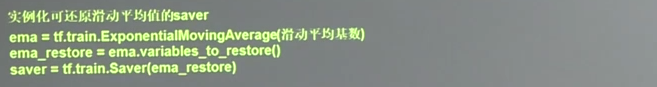 如果训练过程中,使用过滑动平均,每个参数的滑动平均值也会被保存到模型中。我们使用模型识别图片时,更希望加载参数的滑动平均值,用这样三句话,实例化可以还原滑动平均值的saver对象。这样在运行加载模型的参数时,每个参数就会加载各自的滑动平均值了。