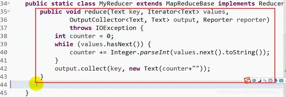 public static class MyReducer extends MapReduceBase implements Reducer<Text, Text, Text, Text>{