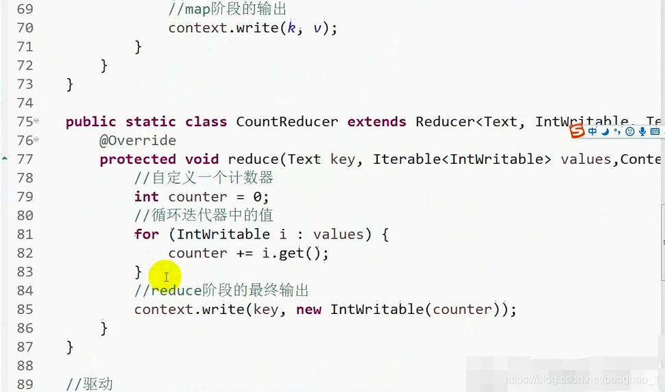 context.write(k, v);// 这个输出在循环里面 有一个输出一个