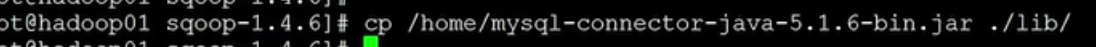 将环境配好,然后保存退出,在source 命令一下,使其生效 。然后再讲mysql拉到sqoop的lib下面