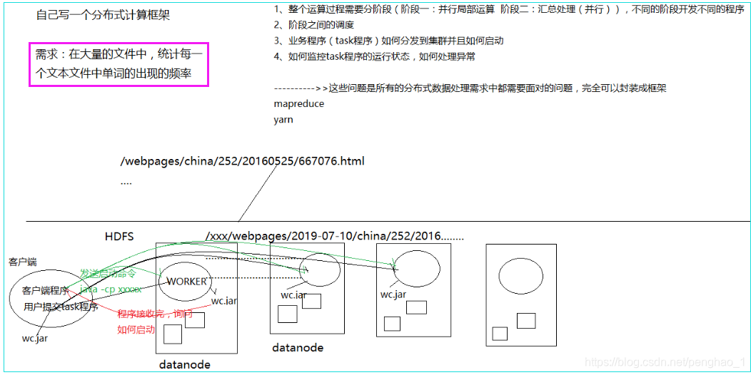 2、如何将wc.jar分发到集群里面呢?还有DataNode要实现什么功能将数据接下来?