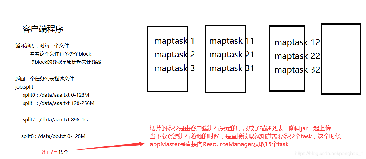 所有的任务都是由master去调度的,它是知道maptask,reducetask是如何启动的,所以。(也能拉去split切片后的数据,拉取下来后,就知道需要多少个task,因为客户端已经切好了)
