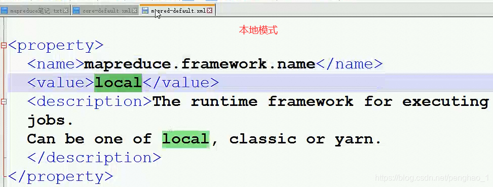 fs.defaultfs模式是Linux的根目录。将程序跑的框架为本地模式