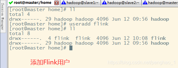 其他节点也是一样,添加用户,赋予密码,赋予权限