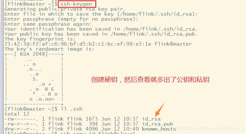 同理,在其他节点也要创建秘钥,然后传给其他节点,及自己