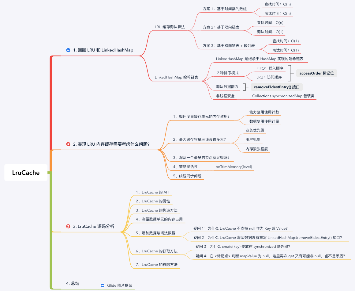 1、LruCache 是 Android 标准库提供的 LRU 内存缓存框架,基于 Java LinkedHashMap 实现,当缓存容量超过最大缓存容量限制时,会根据 LRU 策略淘汰最久未访问的缓存数据;
