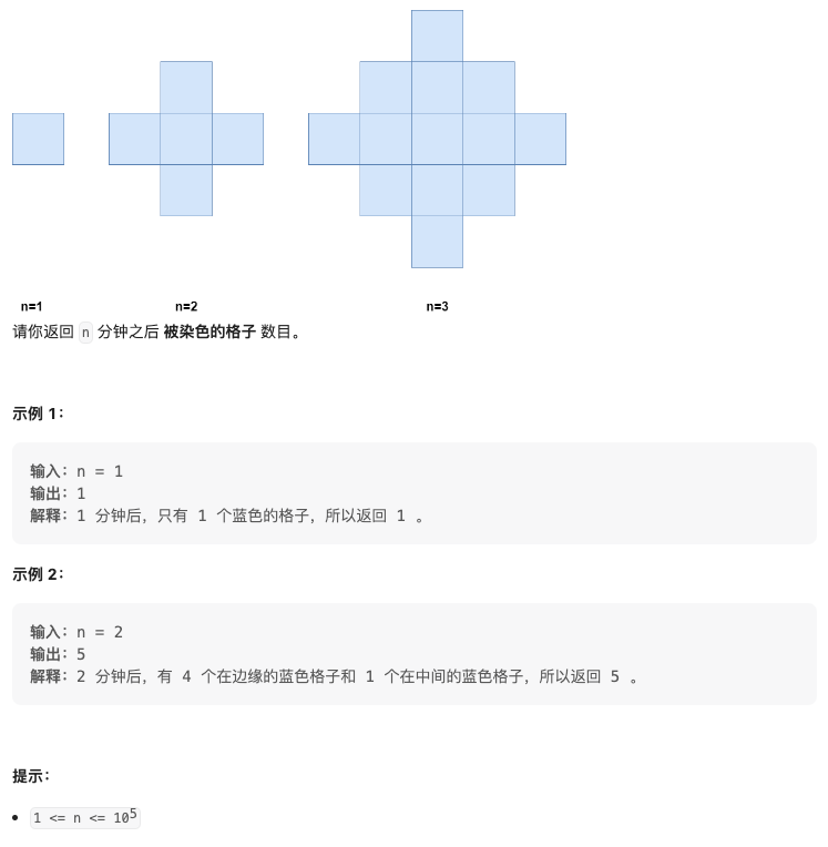 https://leetcode.cn/problems/count-total-number-of-colored-cells/