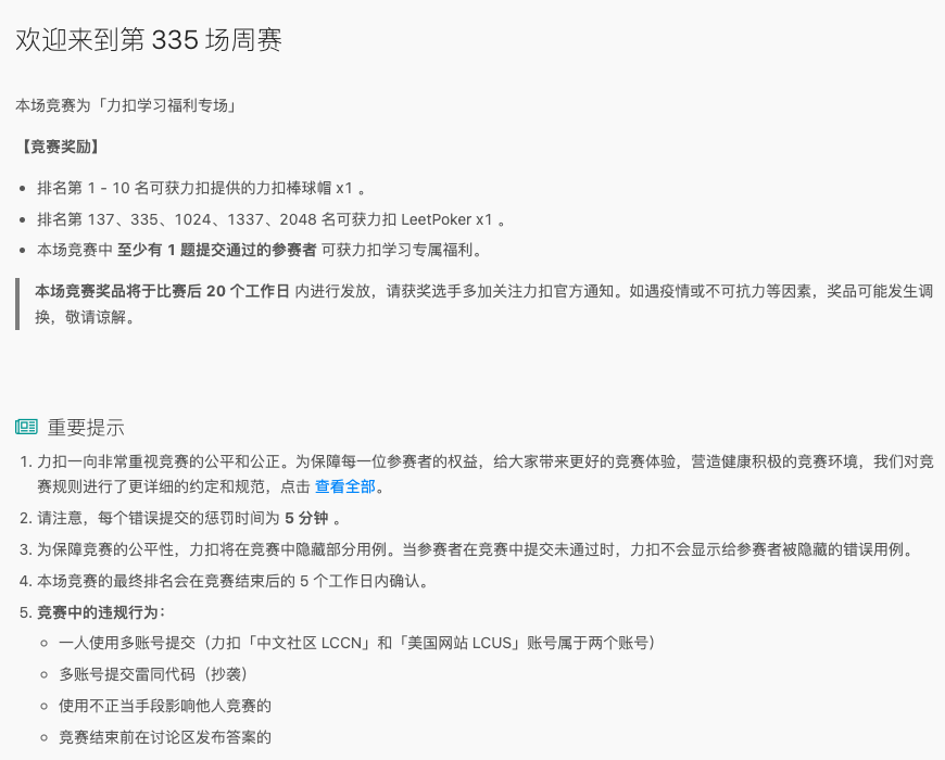昨晚是 LeetCode 第 335 场周赛,你参加了吗?这场周赛整体难度不高,有两道模板题,第三题和第四题应该调换一下位置。