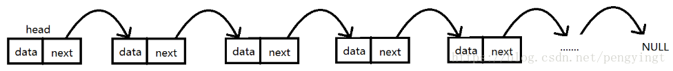 图中展示了一个单链表的存储原理。head为头节点,它不存放任何数据,只是充当一个指向链表中真正存放数据的第一个节点的作用,每个节点中都有一个next引用,指向下一个节点,以此类推,直到最后一个节点的next指向null。