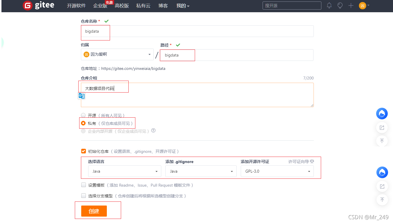 第二步:初始化本地仓库并推送代码到码云远程仓库