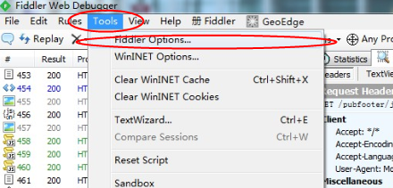 (1)打开Fiddler菜单项Tools->TelerikFiddler Options