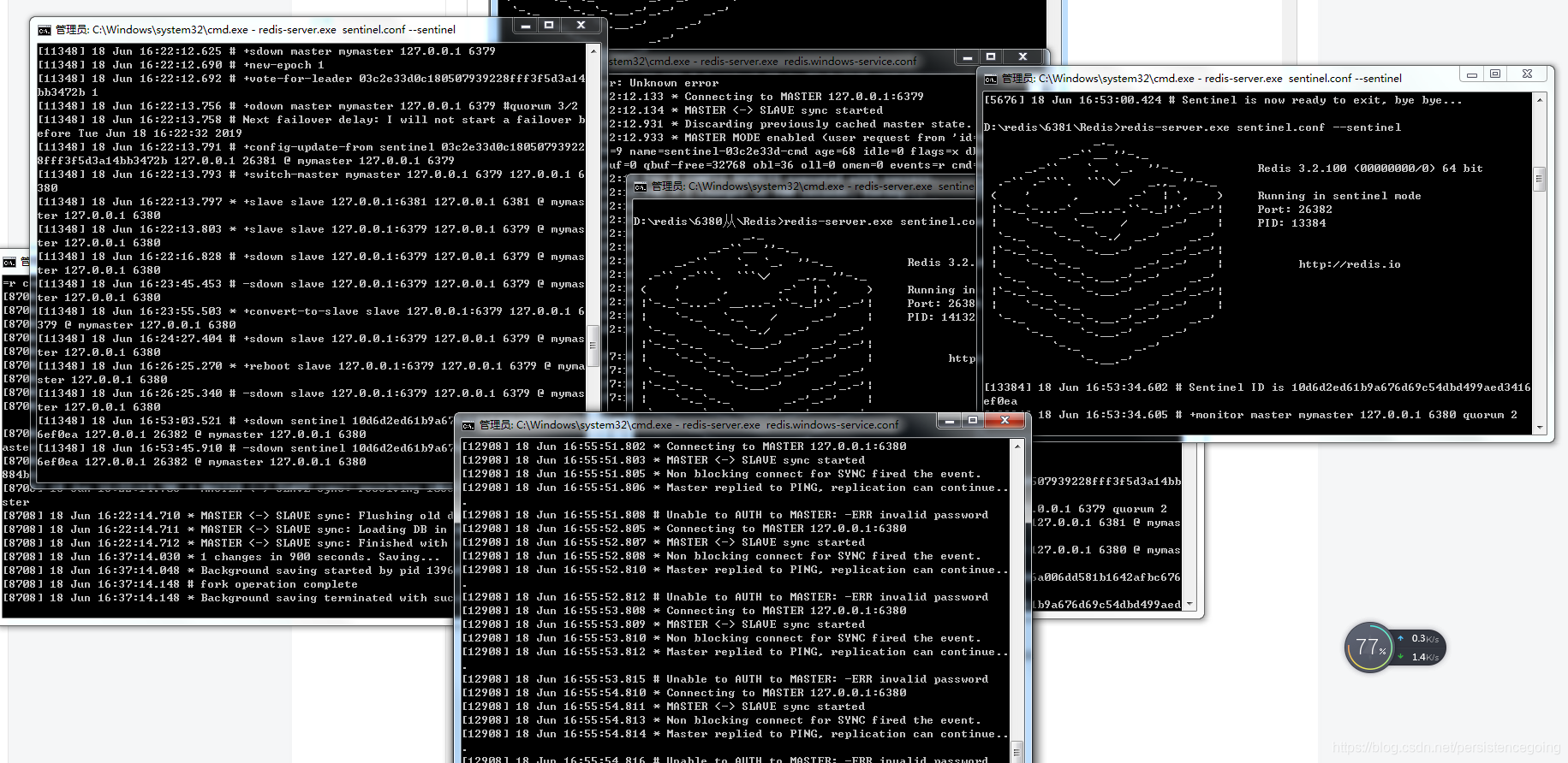 sentinel auth-pass mymaster 123456