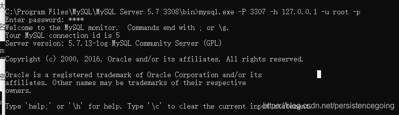 记住端口是大写的P -P 3308, 不然会报错