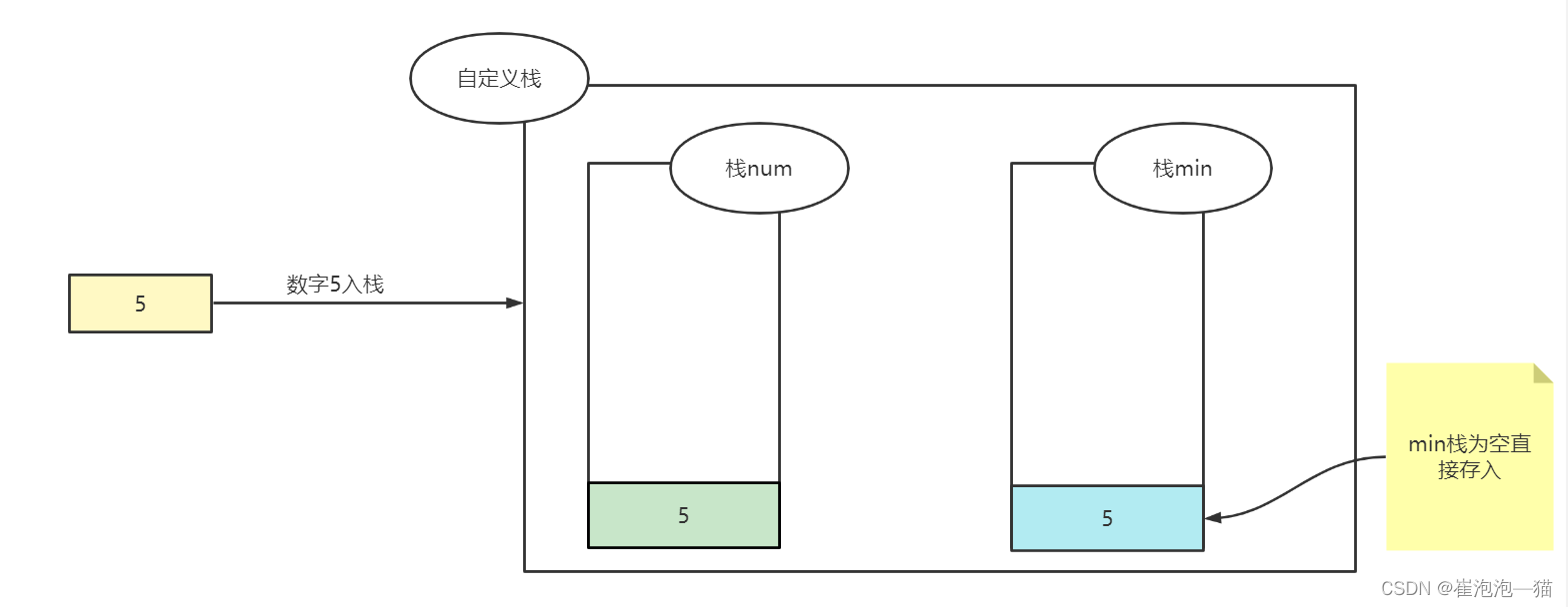 // 判断min栈当中有没有值,如果没有那么就直接写入,如果有那么要比对当前数据和min栈当中栈顶元素的大小