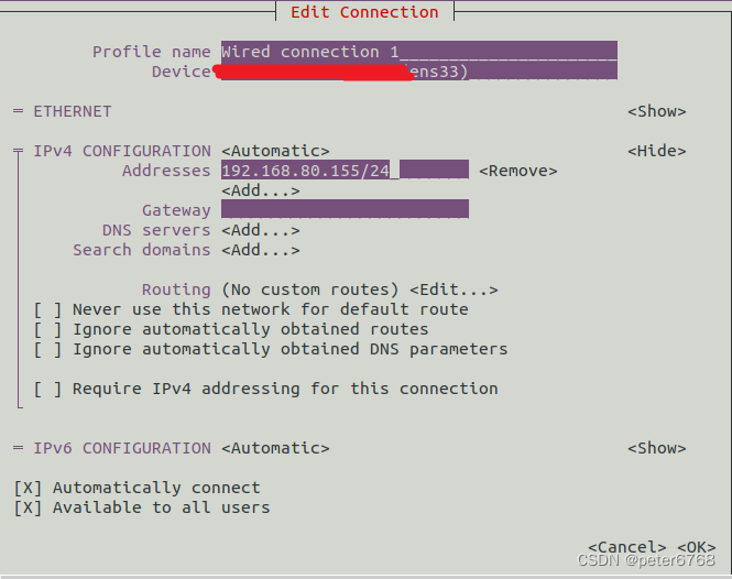 然后nmtui -> edit a connection -> 把ping不通的ip地址加入,保存退出