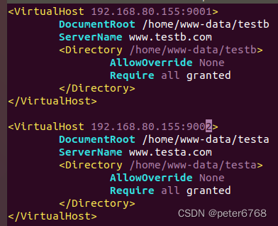 修改配置文件/etc/apache2/sites-available/000-default.conf,在每个<VirtualHost 192.168.80.xxx>后面加上端口号,如下图