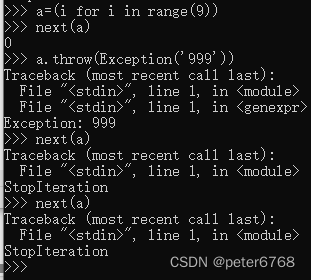 解决方法 不要通过throw给生成器注入,通过支持迭代(__iter__)的容器类作为解决方法,参数和异常通过类属性和类方法实现