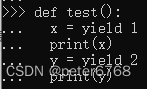 上面例子局限性 1看代码很难看懂,只有理解yield的人才能看懂 2多次调用时,总需要处理第一次send值为None的情况