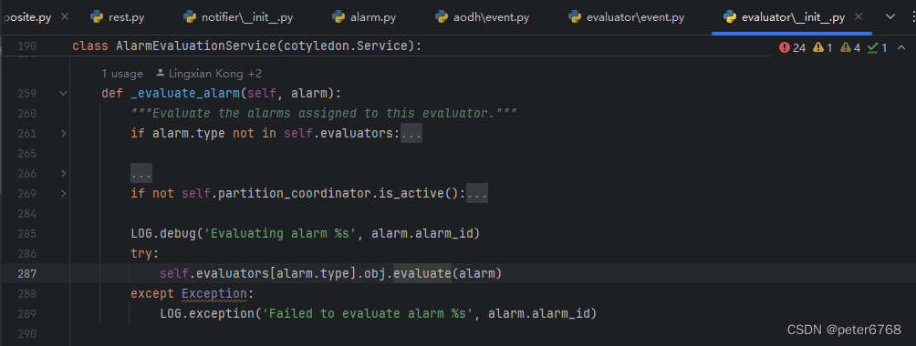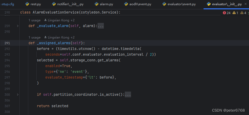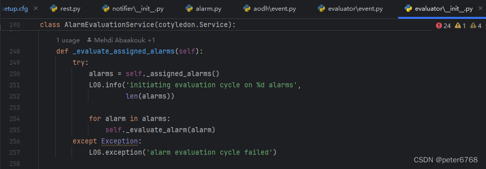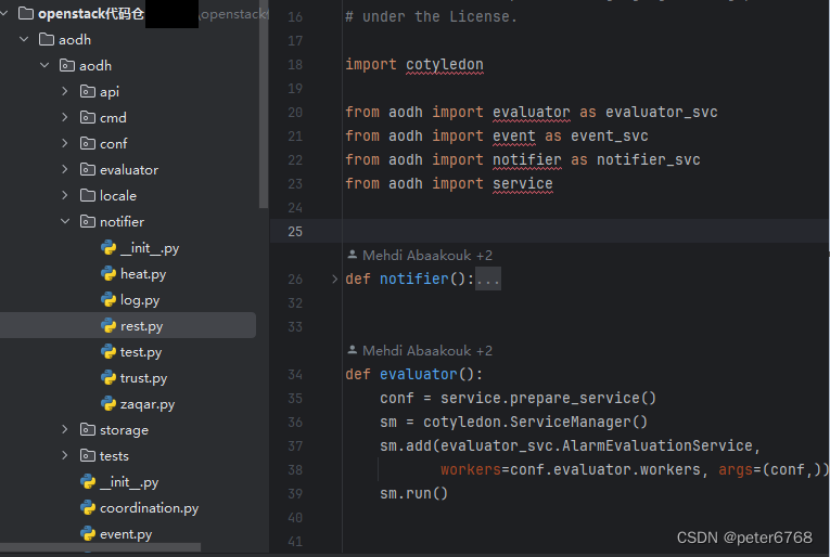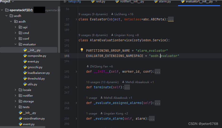 从入口函数进入,执行aodh.cmd.alarm.evaluator函数,该函数会创建aodh-evaluator逻辑类(即aodh-evaluator主要逻辑封装到一个类里)aodh.evaluator.AlarmEvaluationService的实例