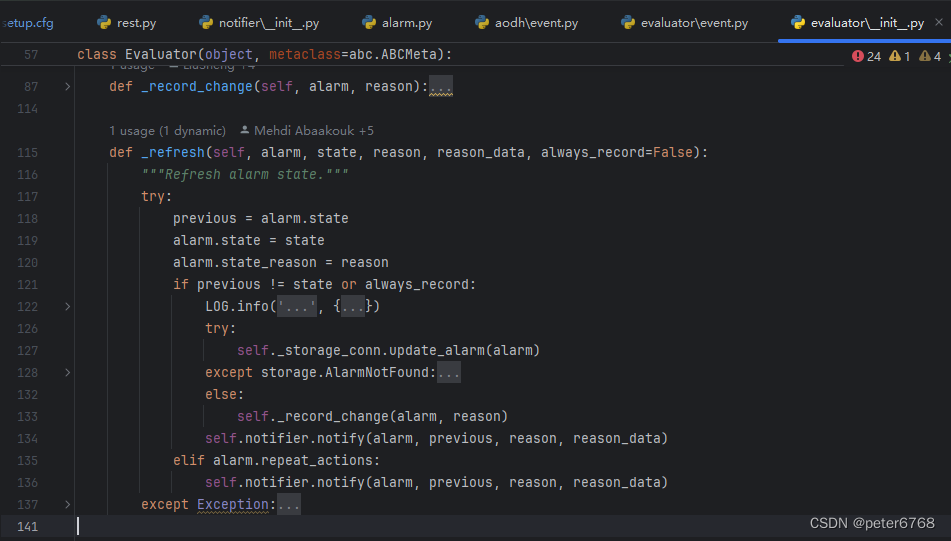 aodh-evaluator业务主要逻辑在实例的初始化里,实例化过程中,会创定时任务,然后启动定时任务,定时任务会周期查db的告警和系统指标,去评估指标是否超过告警里的阈值,如果超过阈值则按一定规则上报给aodh-notifier