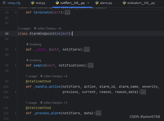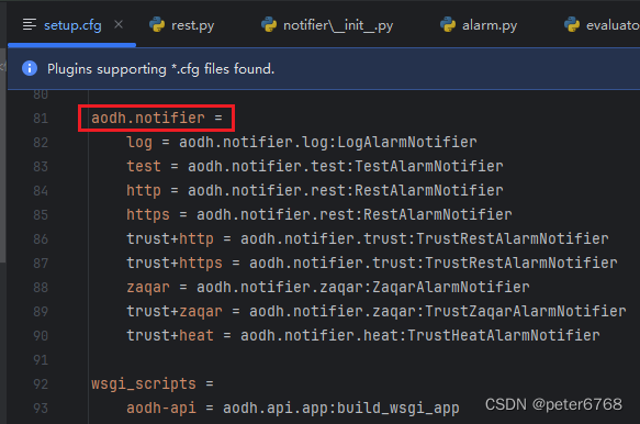 处理告警通过插件实现,插件定义在setup.cfg里,插件通过stevedore.extension模块被加载,加载后被封装到AlarmEndpoint里,然后在创建实例时实现监听告警逻辑时同时提供插件,当监听到告警时直接调用插件里的接口notify方法对告警处理