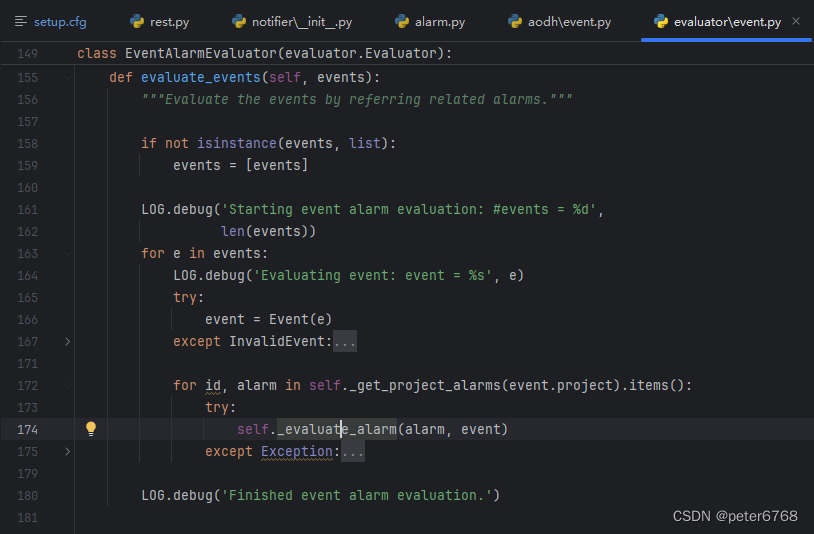 处理告警逻辑封装在EventAlarmEndpoint里,endpoint函数处理告警时直接调用函数入参的evaluate_events方法实现