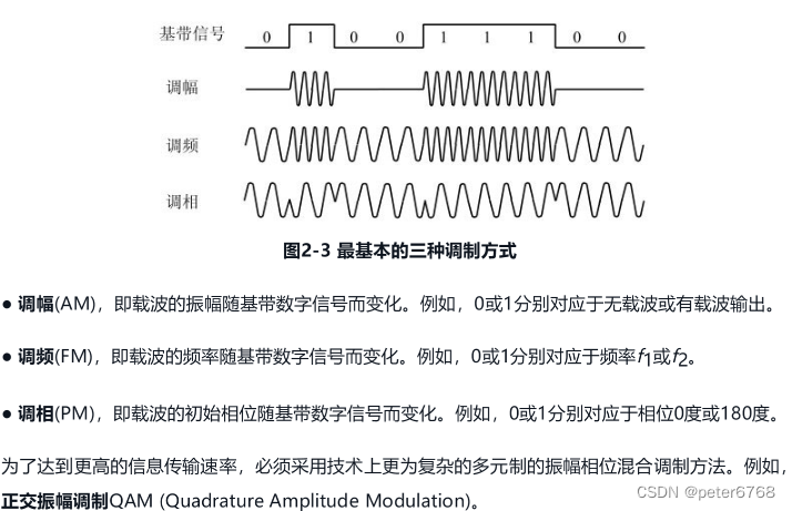 带通调制:对几代信号的频率进行调制,调到较高频率,转换为模拟信号,调制完的信号叫带通信号