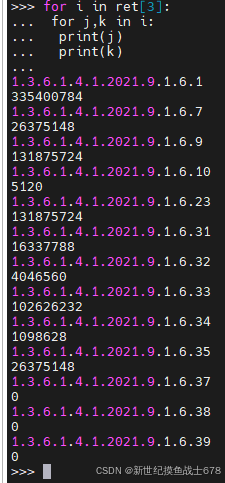 查询结果格式是长度为4的元组,oid和oid对应的值放在元组最后一个元素,parse_snmp_return用来从查询结果解析出来oid和oid对应的值,放到cache里