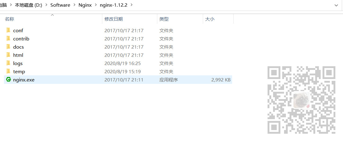 来到上面Nginx解压之后的目录下(服务器上)即含有nginx.exe的目录下,在此处打开命令行