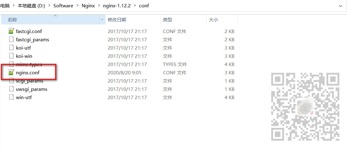 进入到上面解压的conf目录下,编辑Nginx的配置文件nginx.conf