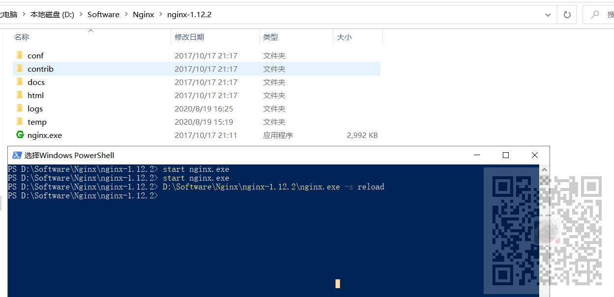 如果没配置环境变量或者提示不行的话前面使用nginx.exe的全路径。