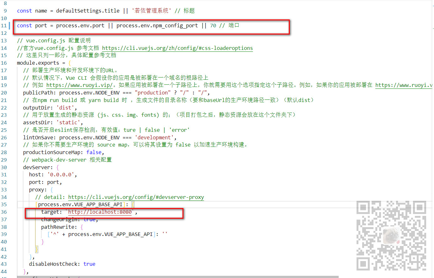 这里是用VSCode作为前端的IDE,首先打开前端项目的vue.config.js