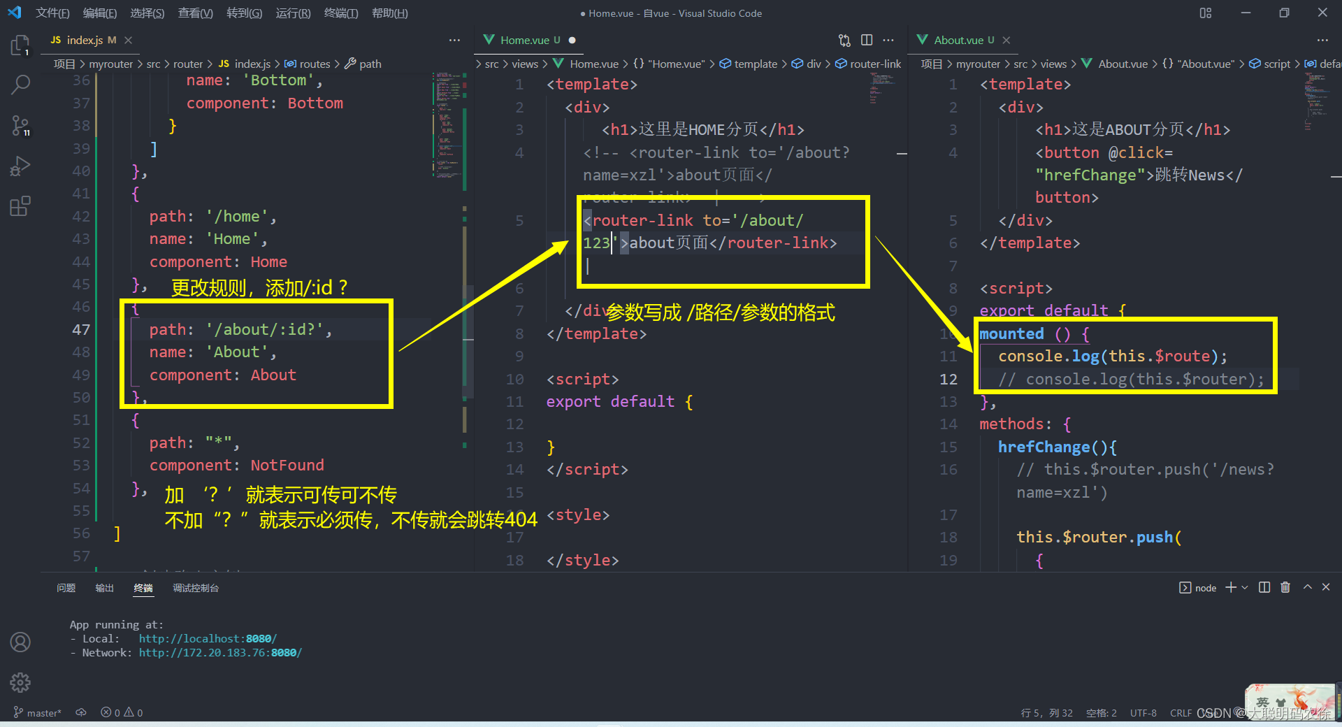 所谓动态路由就是路由规则中有部分规则是动态变化的,不是固定的值,需要去匹配取出数据(即路由参数)。