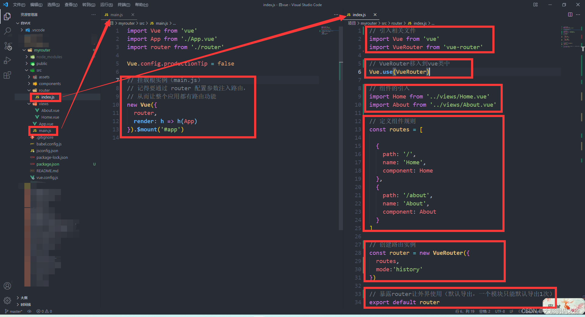 $router是用于做编程式导航的(改变路由的);$route是用户获取路由信息的。