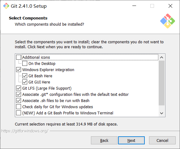 Git GUI Here 这里选中就表示在windows资源管理器右键菜单会添加它。