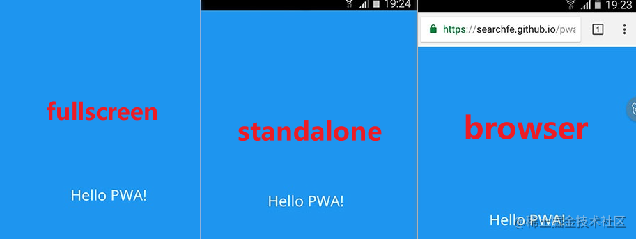 fullscreen或standalone;2. 在windows桌面fullscreen和standalone的样式差不多,在移动端就有区别了;