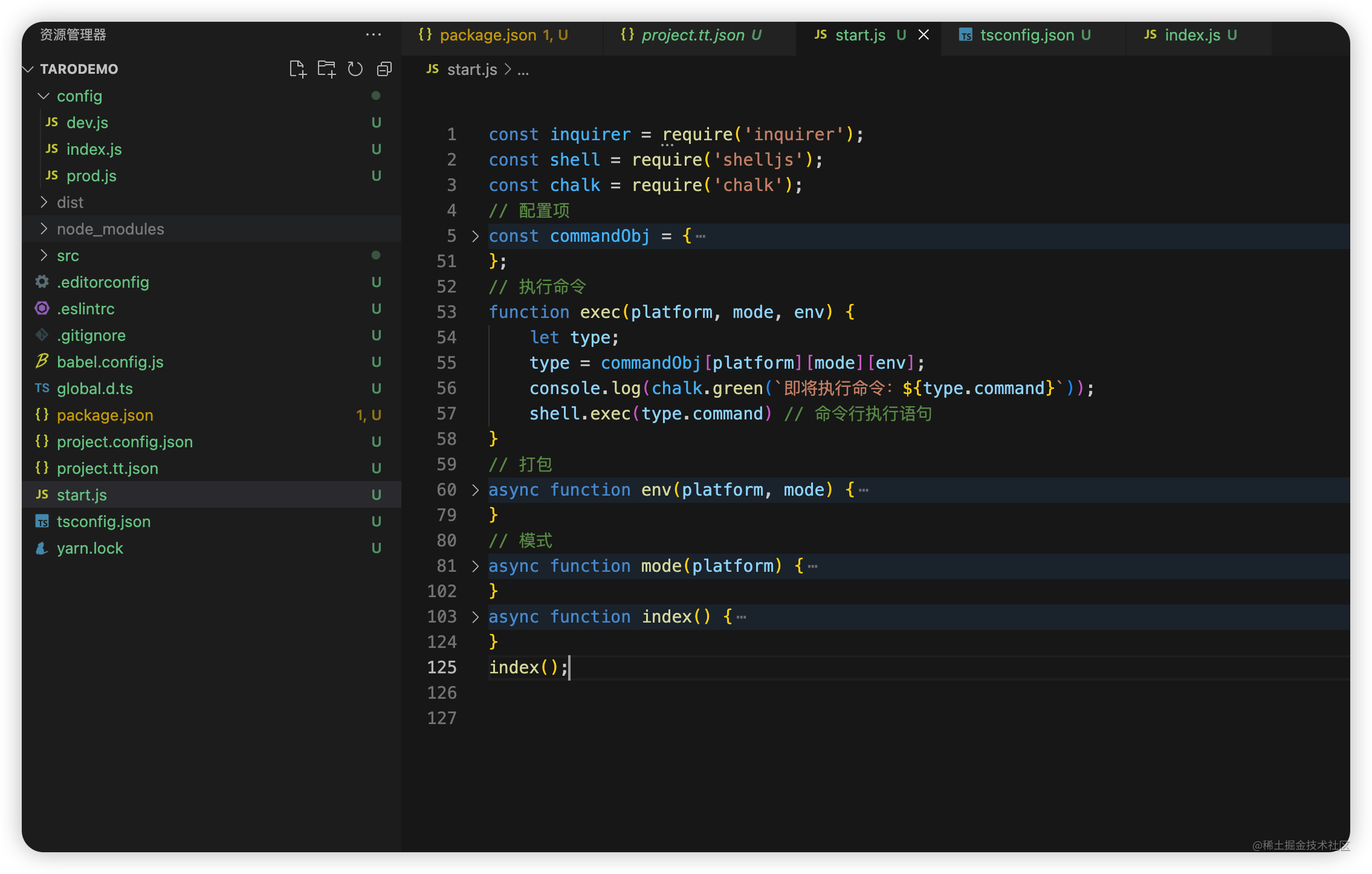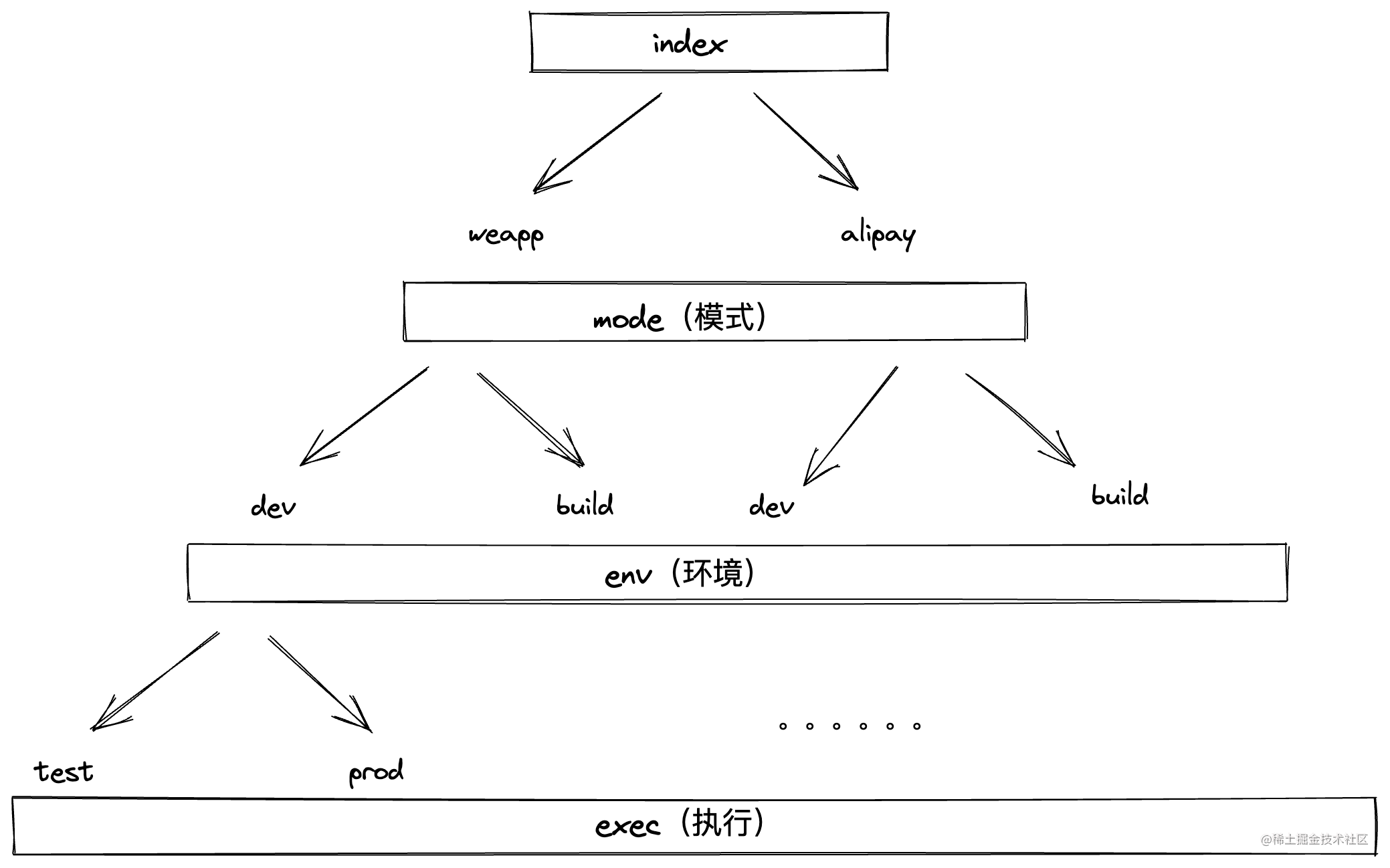 搞懂这个依赖后,发现文件中的index、mode(模式)、env(环境) 这三个函数都是在让用户选取模式,并将此次操作选择的返回值带到下一个函数内,最后将所有参数代入到 exec(执行)。