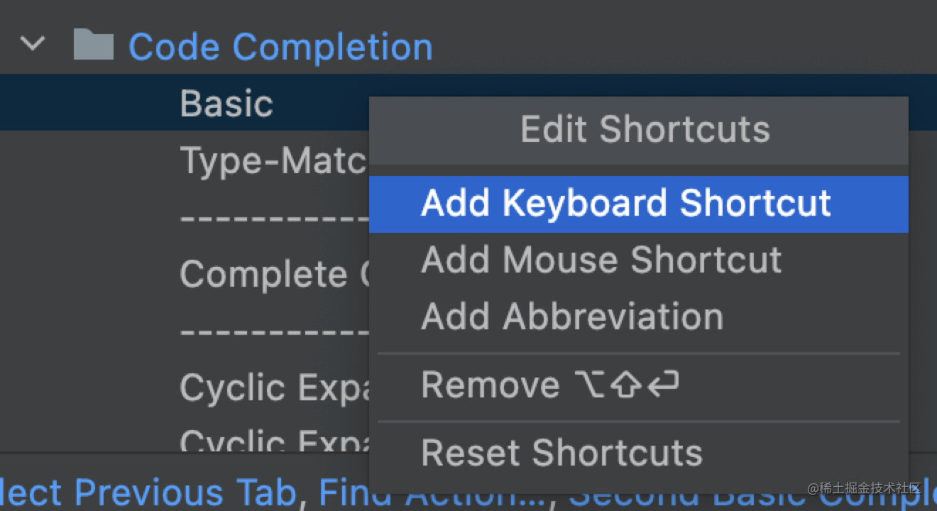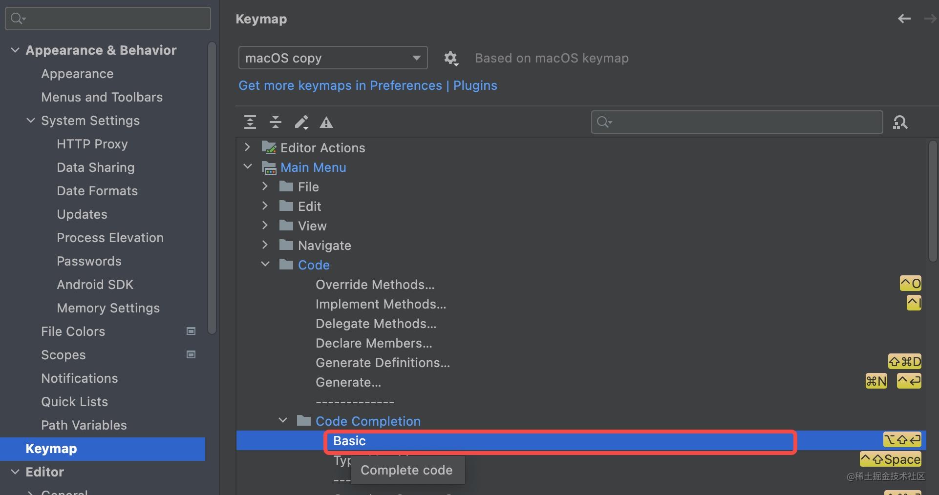 这个时候就需要Code Completion出场了,但是比较坑的是,改方法的快捷键是^Space,和输入法的快捷键冲突了。导致敲了改快捷键后是没有作用的。