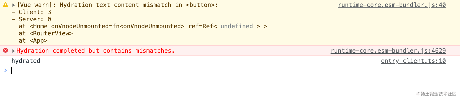 router.isReady().then(() => {app.mount("#app");console.log("hydrated");