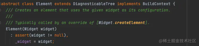 flutter 中的概念 '万物皆 widget '。flutter 的UI布局由一个个 widget 叠加组合而成,而每一个 widget 都会对应 一个 Element, Element 类内部会实现 BuildContext 接口。编码中,我们使用的 context 指向 widget 树中的具体 UI 节点。