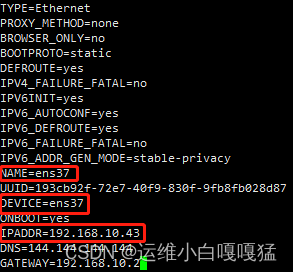 使用vim ./ifcfg-ens37更改ens37的配置,主要改三个地方