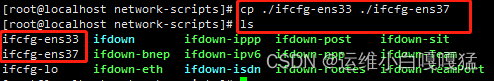 使用cp ./ifcfg-ens33 ./ifcfg-ens37复制一份出来