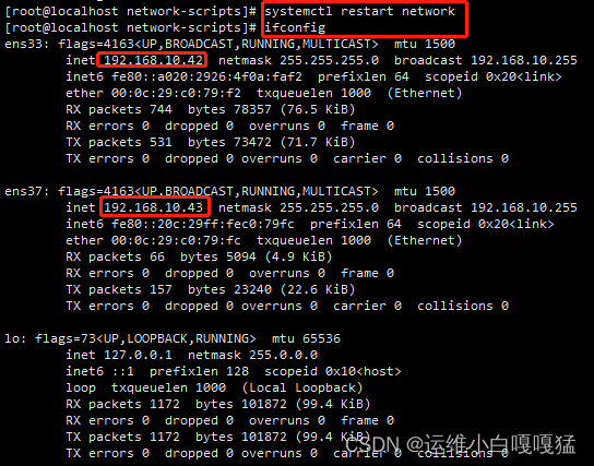 改完之后使用systemctl restart network重启网络,在使用ifconfig查看是否有